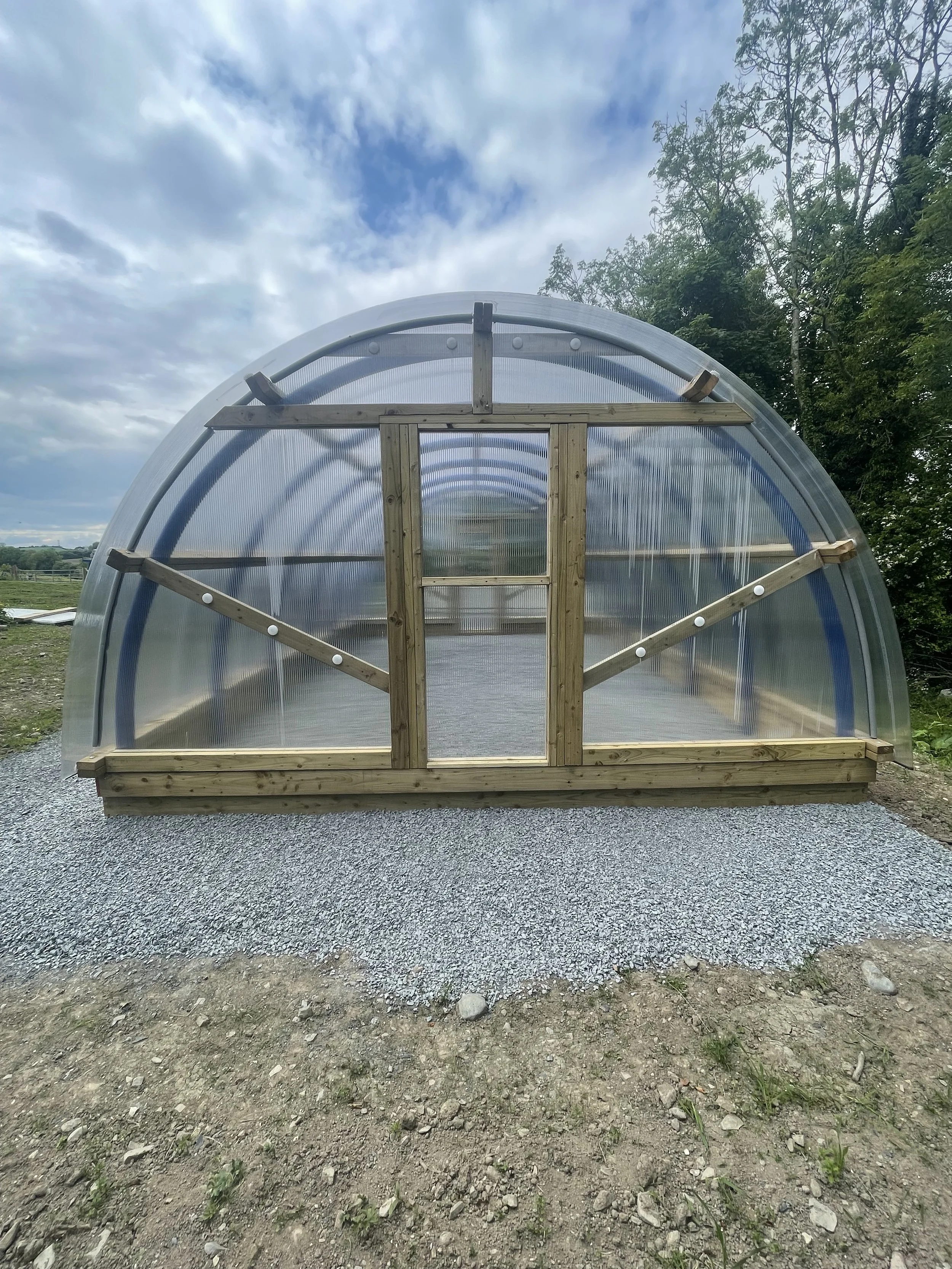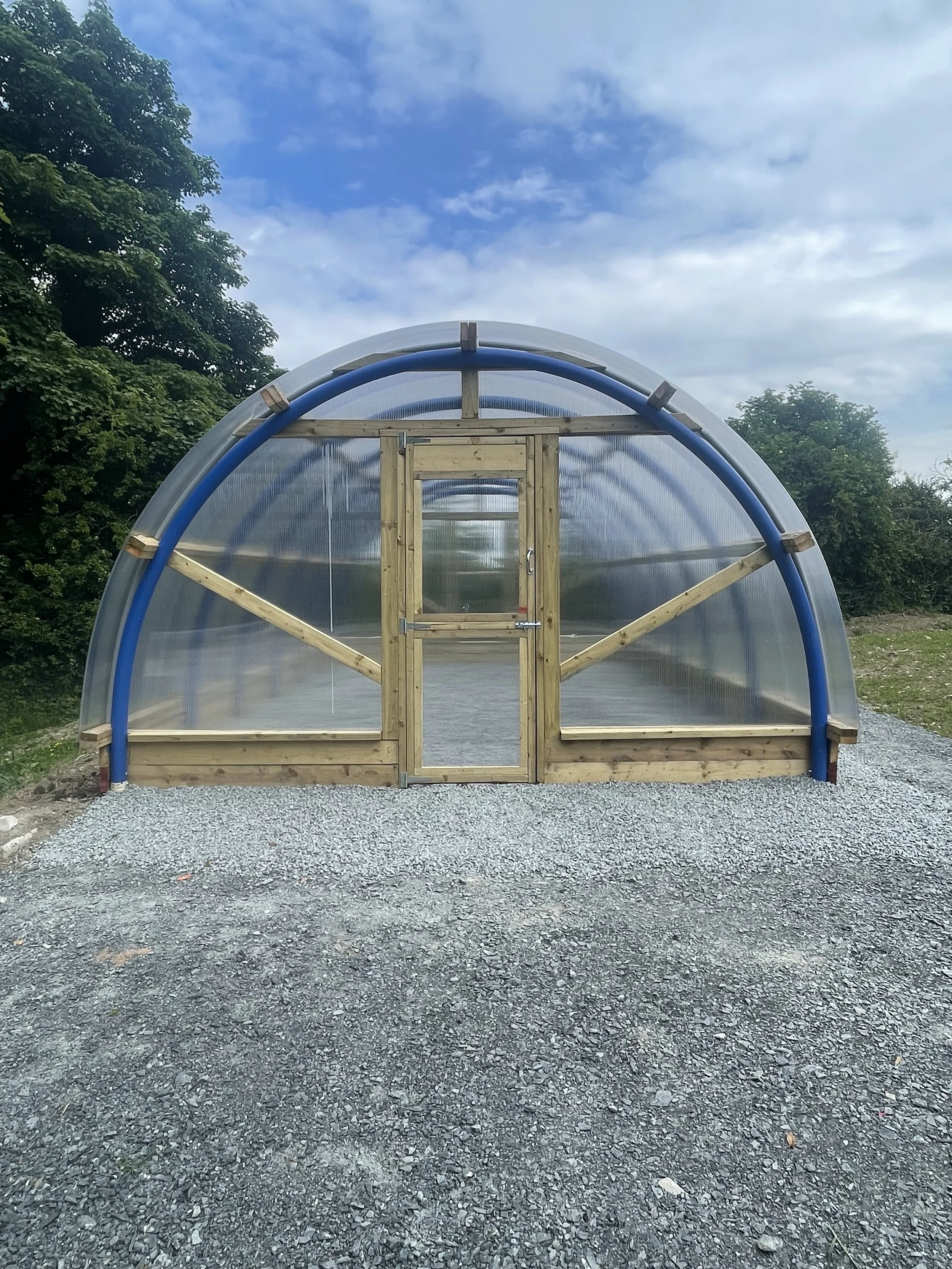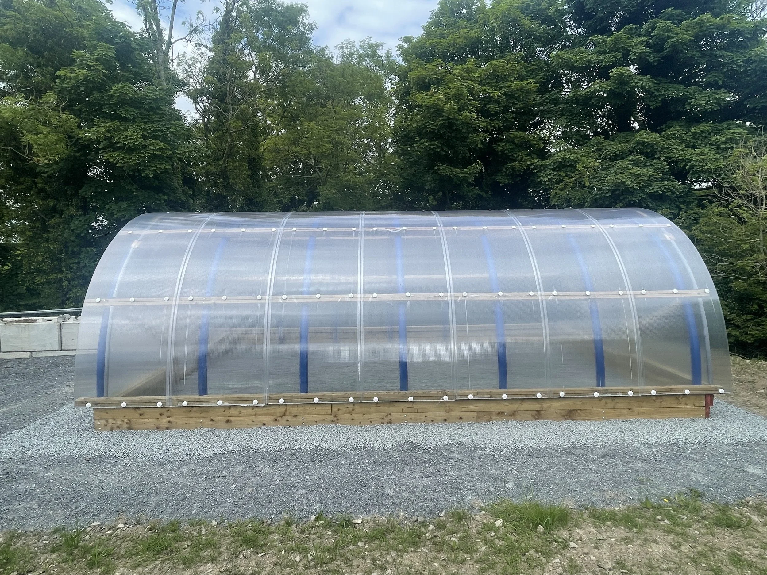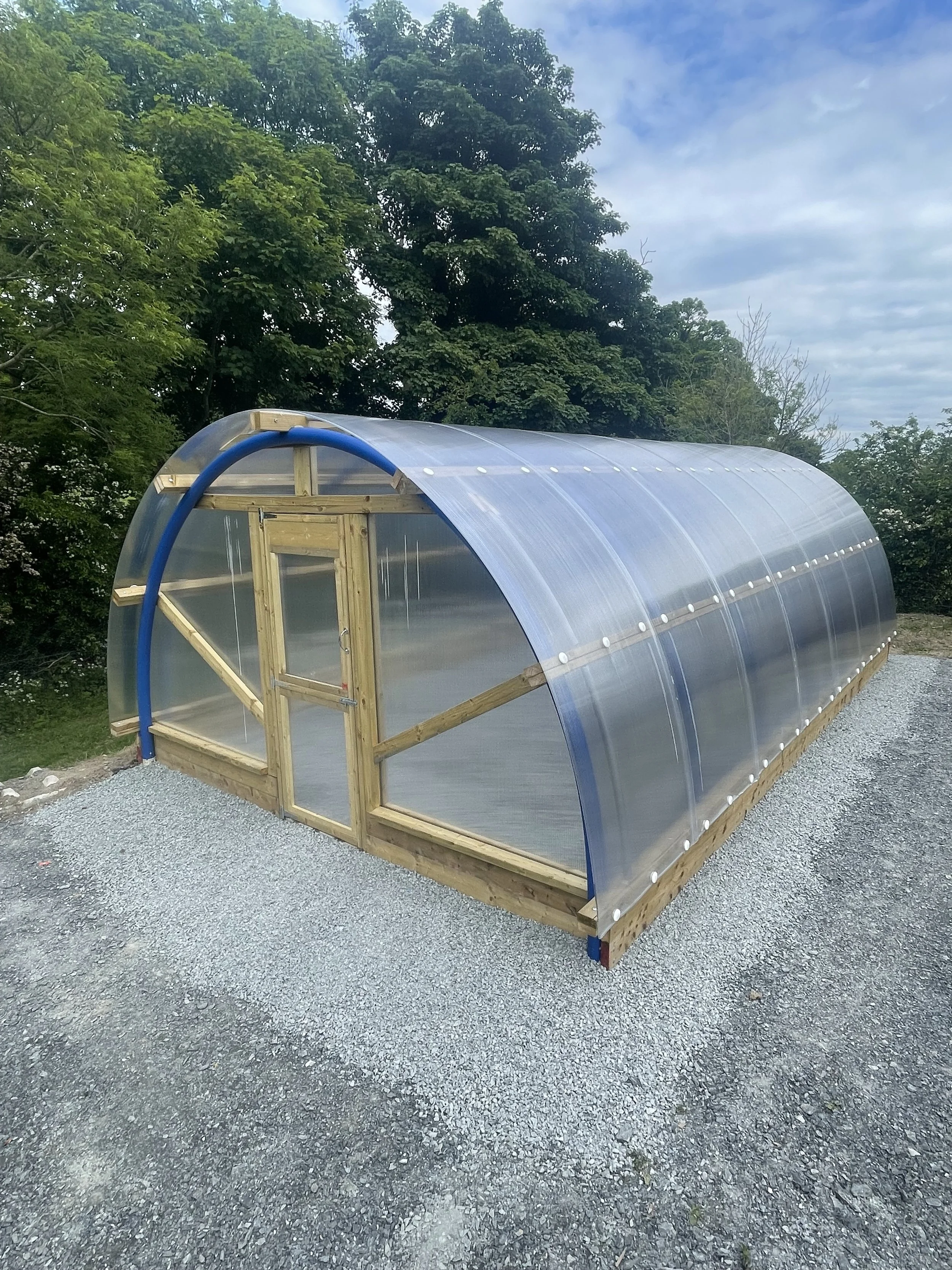 For aesthetics gable ends can be installed inside or outside the end hoops. This is a customer choice. Hoops come in a choice of blue or black.
